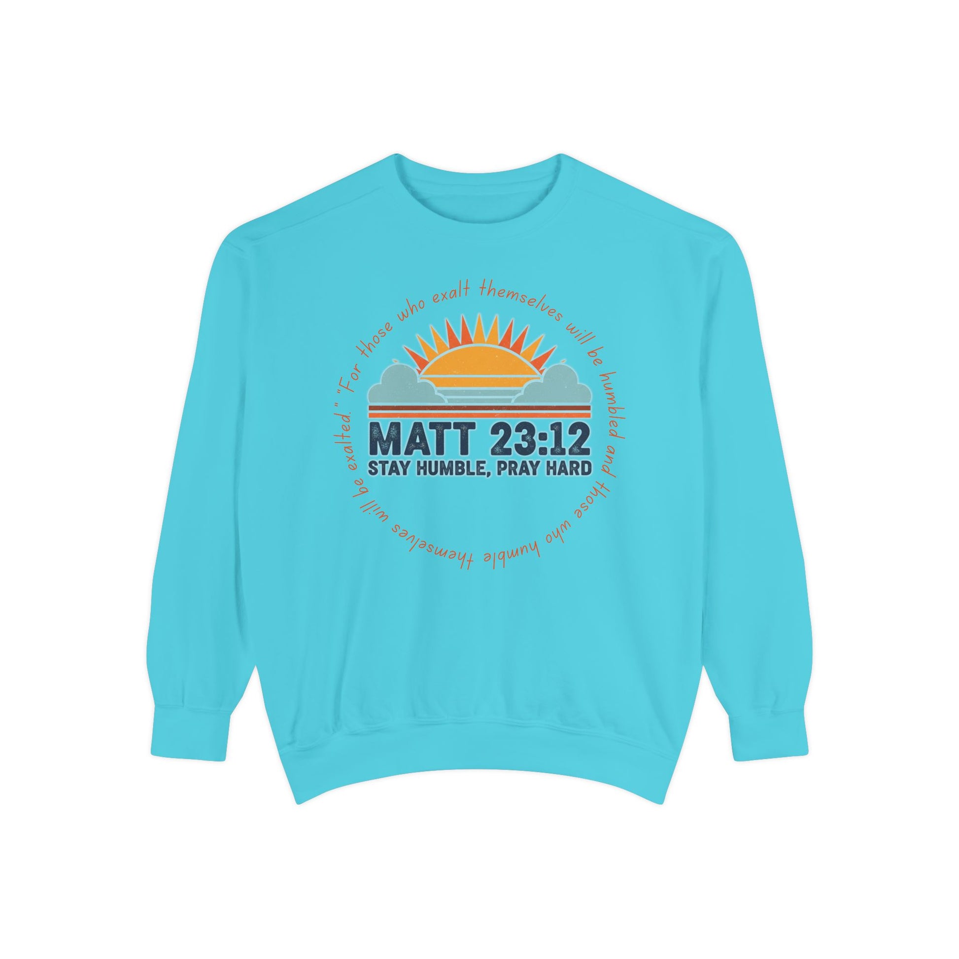 Comfort Colors Matthew 23:12 Garment-Dyed Sweatshirt, Stay Humble Pray Hard, Cozy Church Wear, Gift for Believers, Christian Apparel
