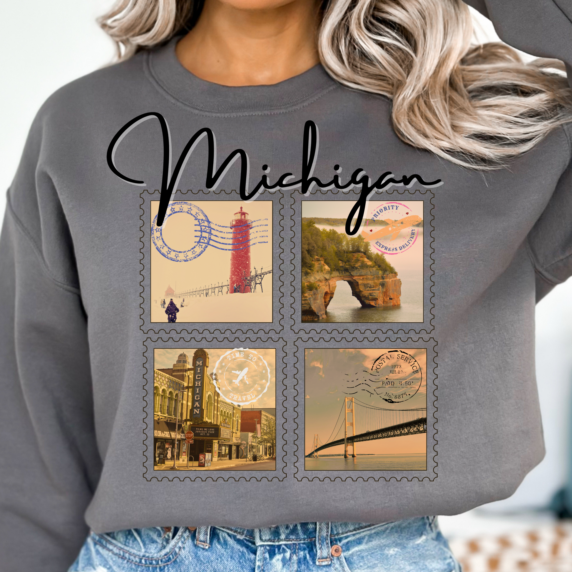 Michigan Vintage Stamp Style Sweatshirt designed only for NotorieTEES